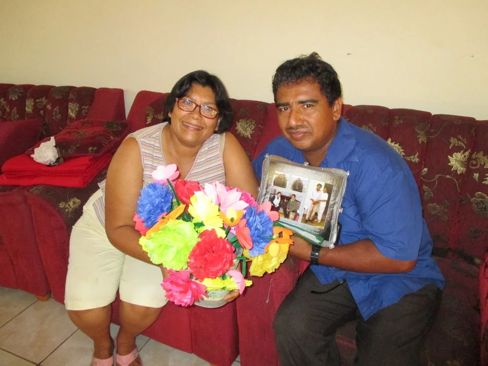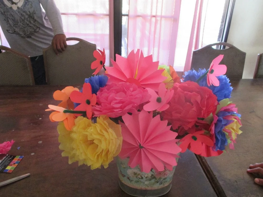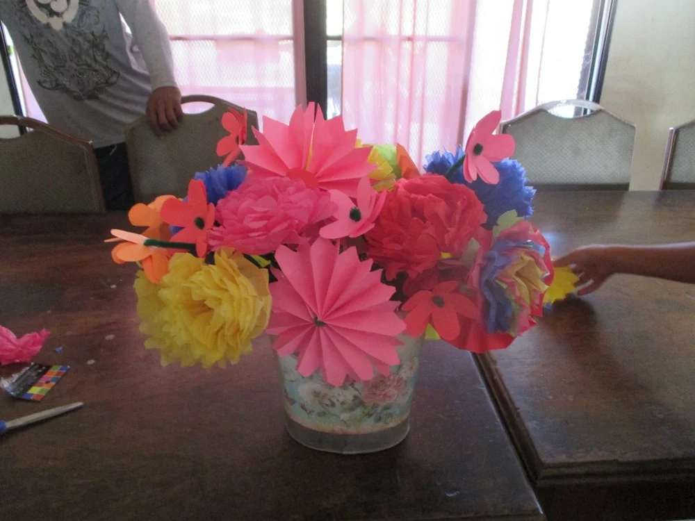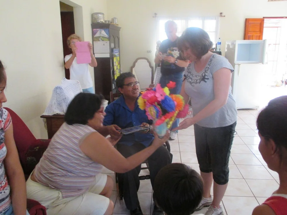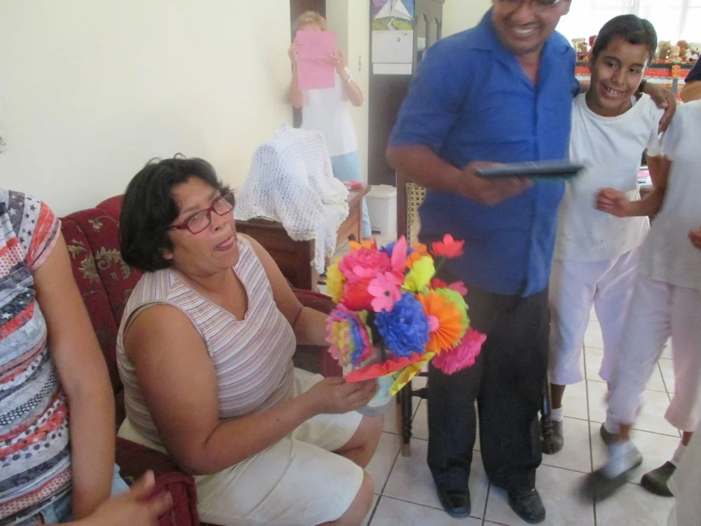 My friend Gwen who went on the trip is talented beyond my imagination and designed a paper bouquet of flowers and a card for them. We also gave them a photo of themselves that was taken many years ago.